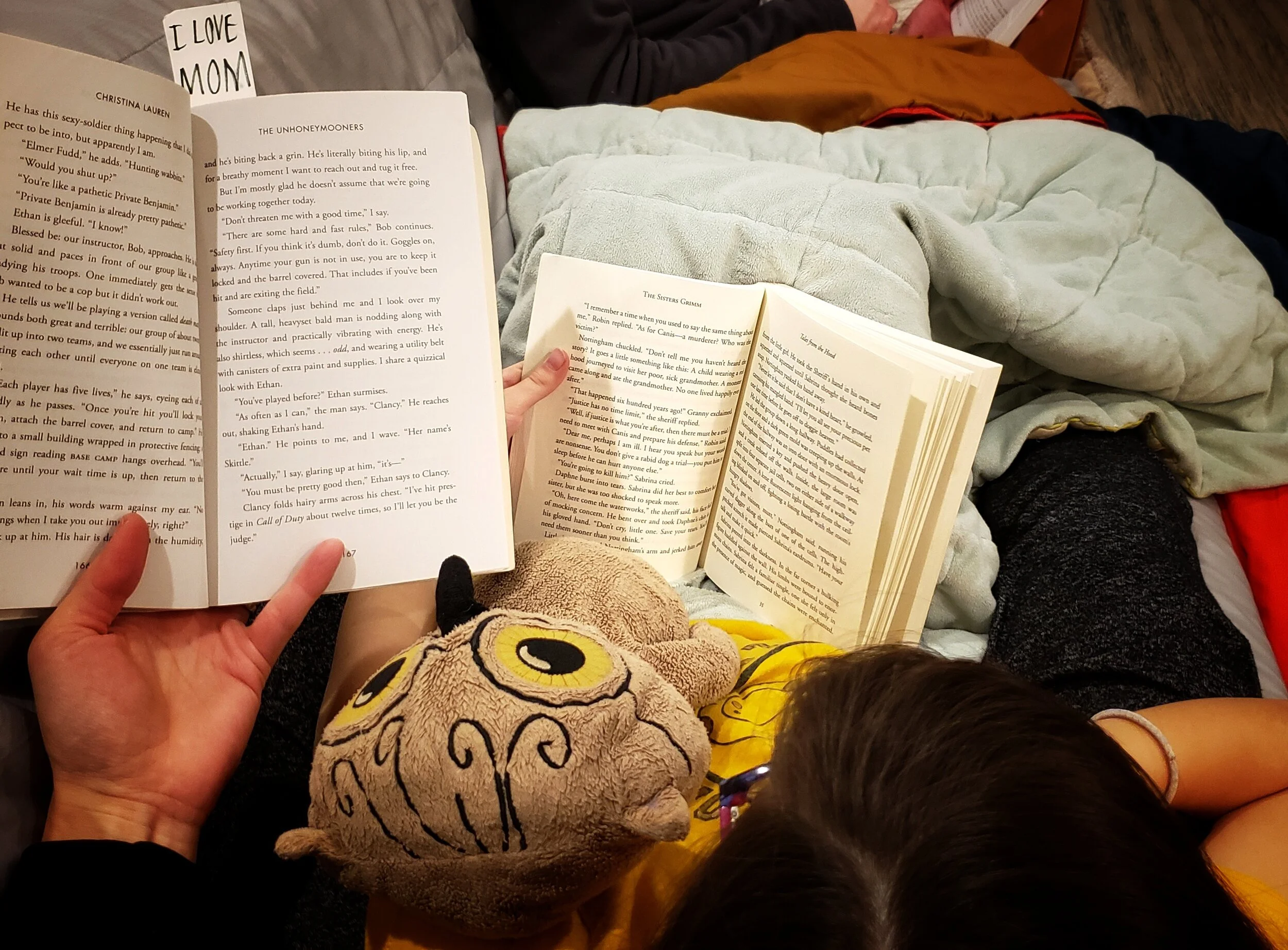 However, on Sunday Violet finished a two-week school readathon and OMG it was AWESOME. She barely did any TV or screen time because she was so focused on reading and I ended up reading a ton (6 books in January and already finished 2 in February!) because I was in this position you see here A LOT: cuddled up with Violet while she read, wiggled her loose tooth, and logged a crapload of minutes (over 2,500 in 2 weeks, I think!). Hooray for reading!